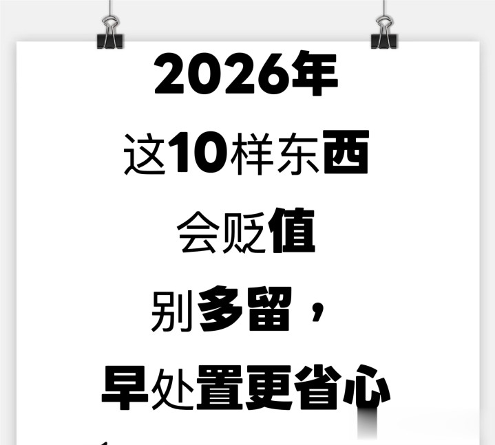 日常消费和资产持有都怕遇到贬值,越放越不值钱既亏成本又占资源。2026年受市场需求调整、技术升级和政策导向影响,10类物品贬值速度会加快,不管是持有还是计划入手,提前摸清能少踩坑,避开不必要的损失。