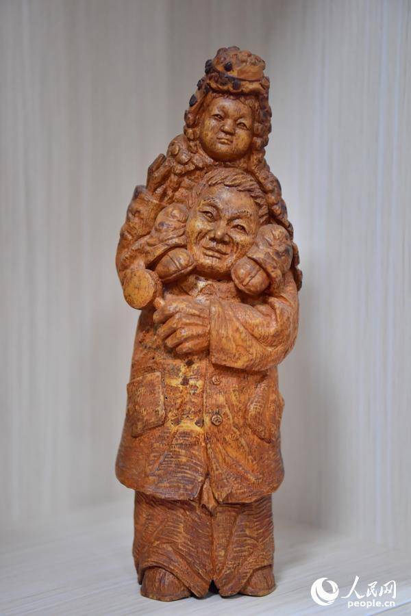 早年,因厂子不景气,刘四喜外出闯荡。1985年初,偶然接触到根雕,从此再未放下。打工之余埋头创作,1989年起正式以根雕为生。凭借扎实的绘画功底,他的作品造型别致、寓意深刻,屡次获奖,成为展会上的“香饽饽”。