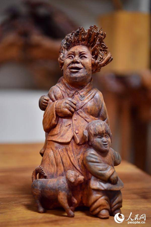 刘四喜利用废弃竹根、树根创作的根雕作品。人民网记者 时雨摄