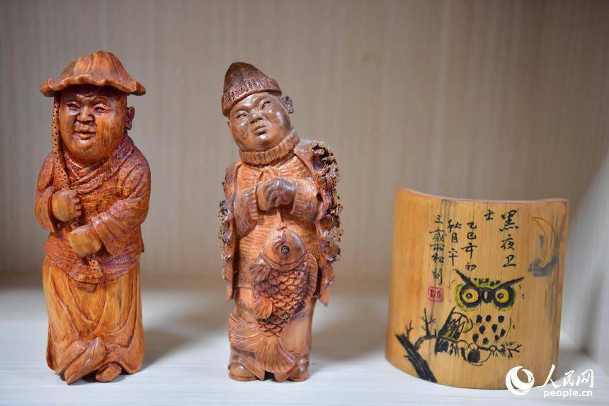“不仅竹根和树根,畸形的枝、杈,只要质地坚硬且有造型,都可以成为原材料。”刘四喜每次觅得心仪的材料,都如获至宝。他的作品题材涵盖古今人物、飞禽走兽、花鸟鱼虫。“尤其进行人物创作时,要充分挖掘形象特征。”他格外注重肢体与神态的塑造,“那些看似微不足道的细节,往往能起到画龙点睛的作用。”